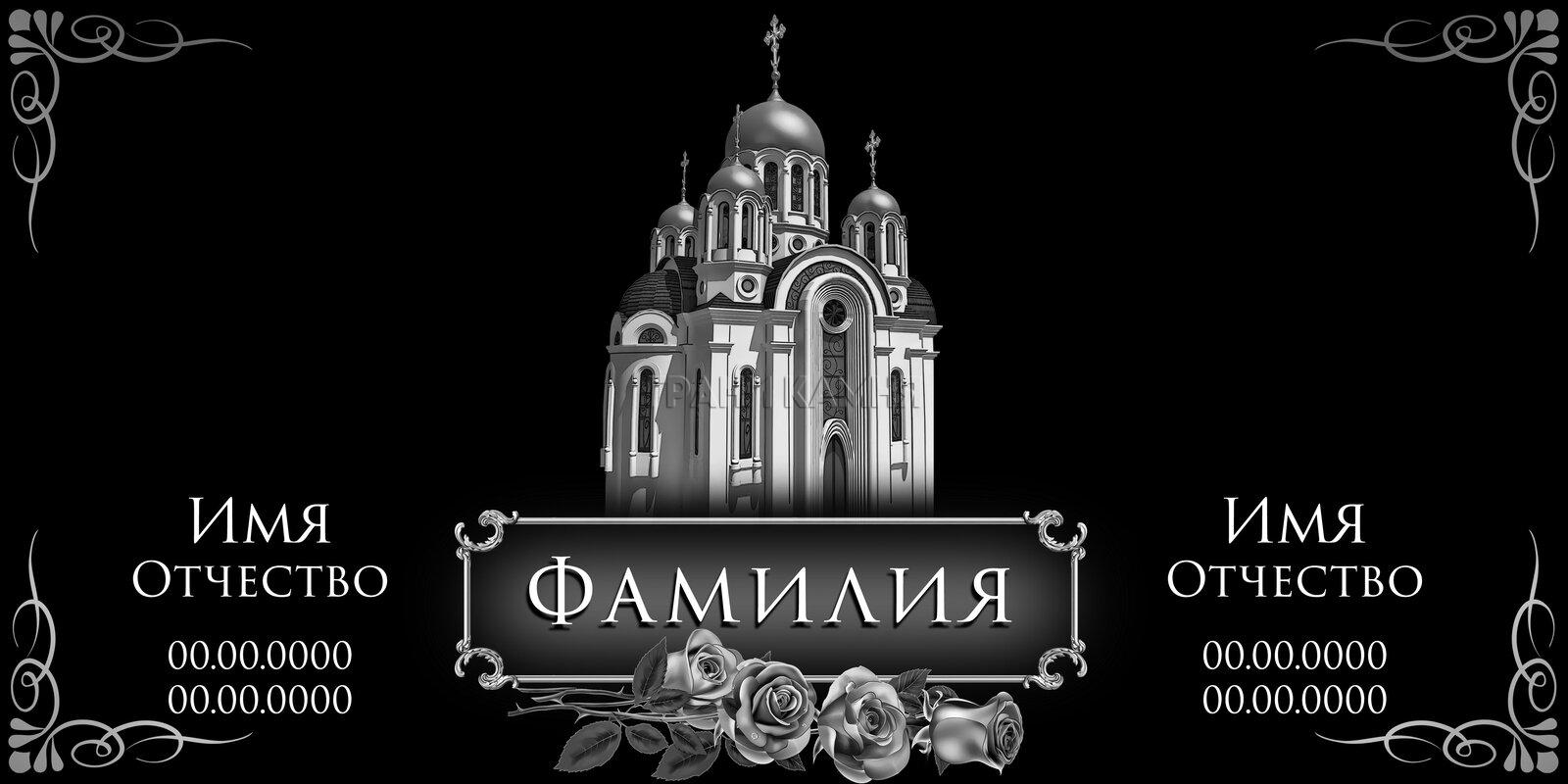 Горизонтальный семейный гранитный памятник на могилу с церковью №47