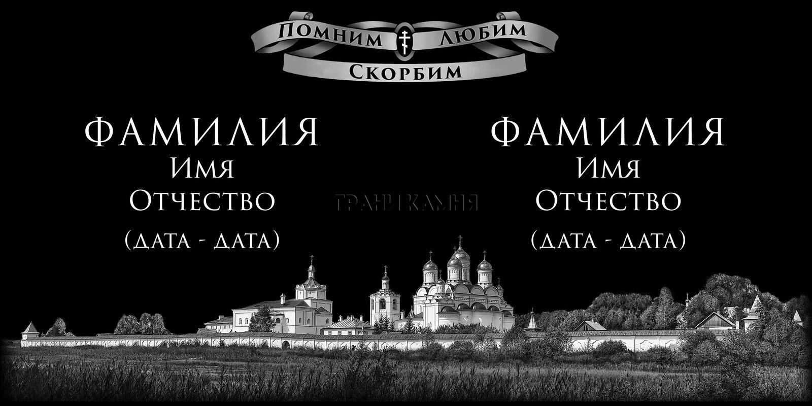 Горизонтальный гранитный памятник на двоих на могилу с церковью №57