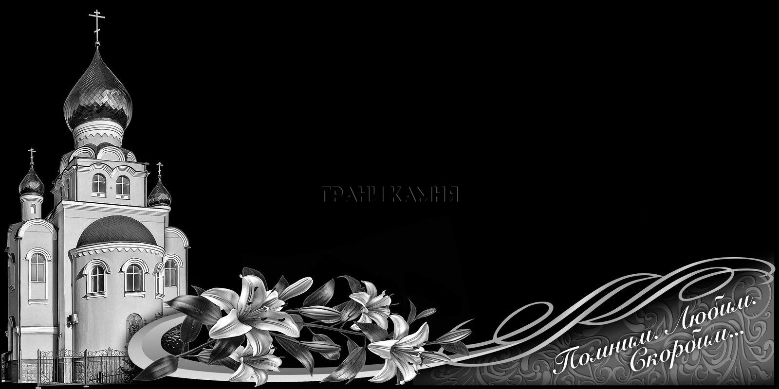 Горизонтальный гранитный памятник на могилу с церковью и лилиями №35