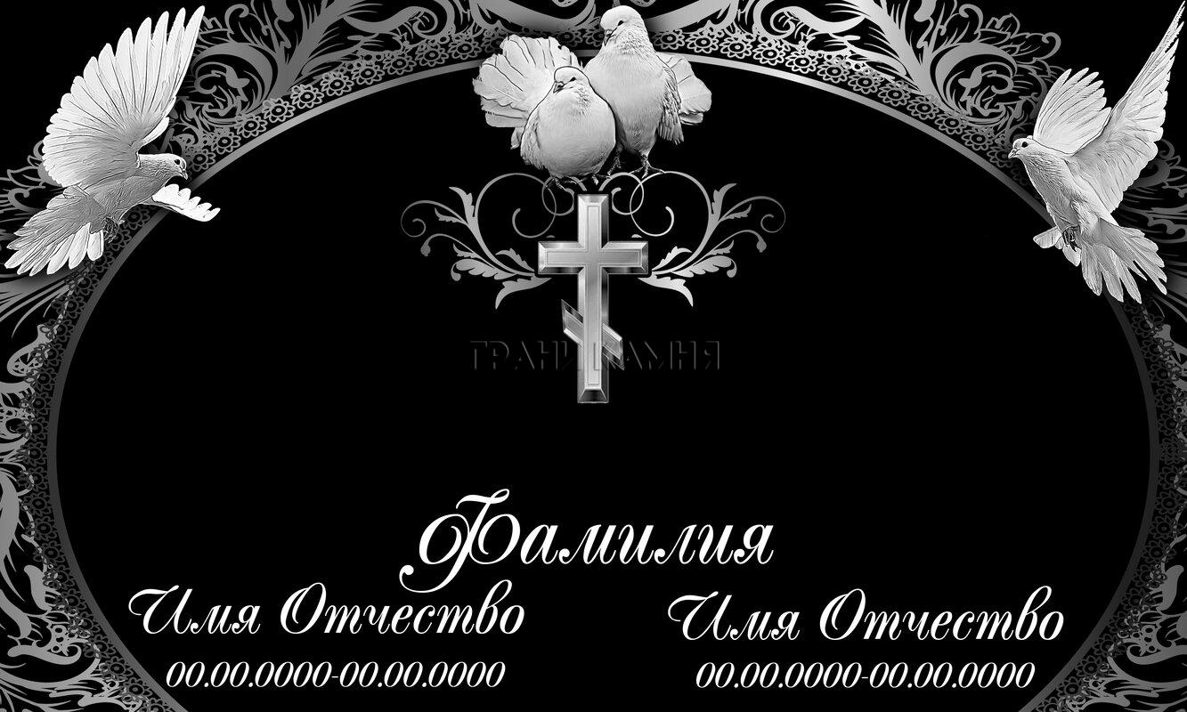 Горизонтальный гранитный памятник семейный на могилу с голубями и крестом №42