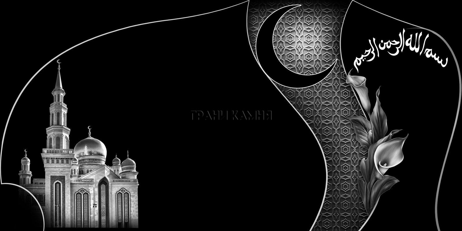 Горизонтальный гранитный мусульманский памятник на могилу с мечетью №53