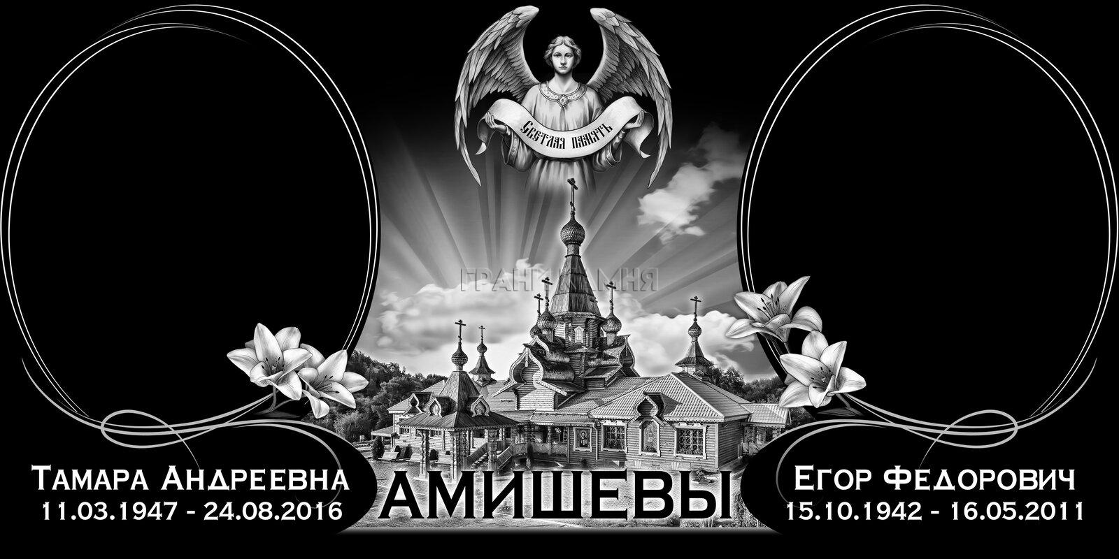 Горизонтальный семейный гранитный памятник с церковью и ангелом №88