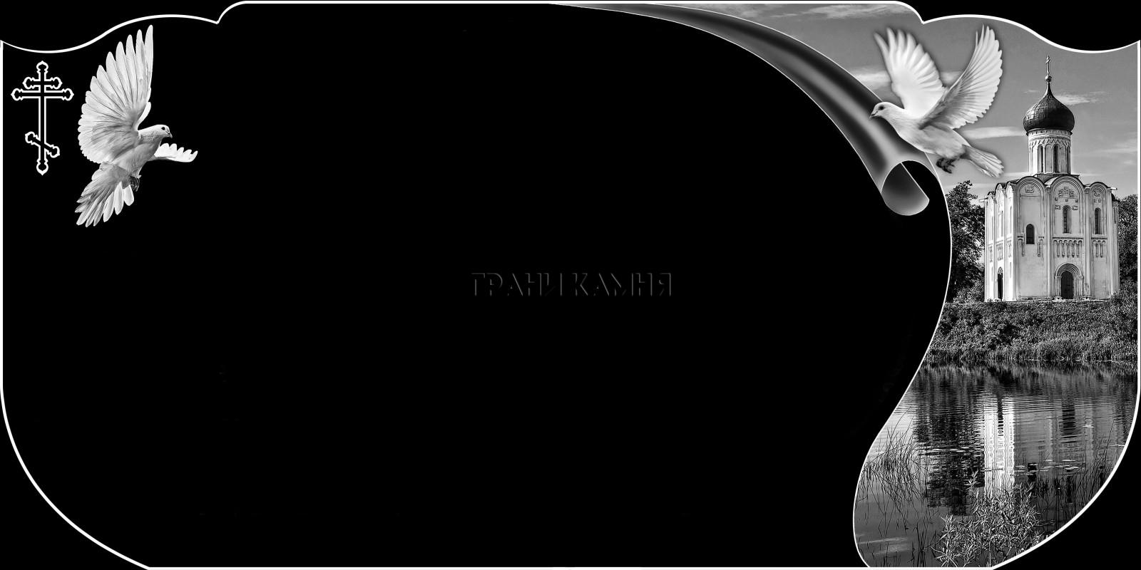Горизонтальный гранитный памятник с церковью и голубями №107