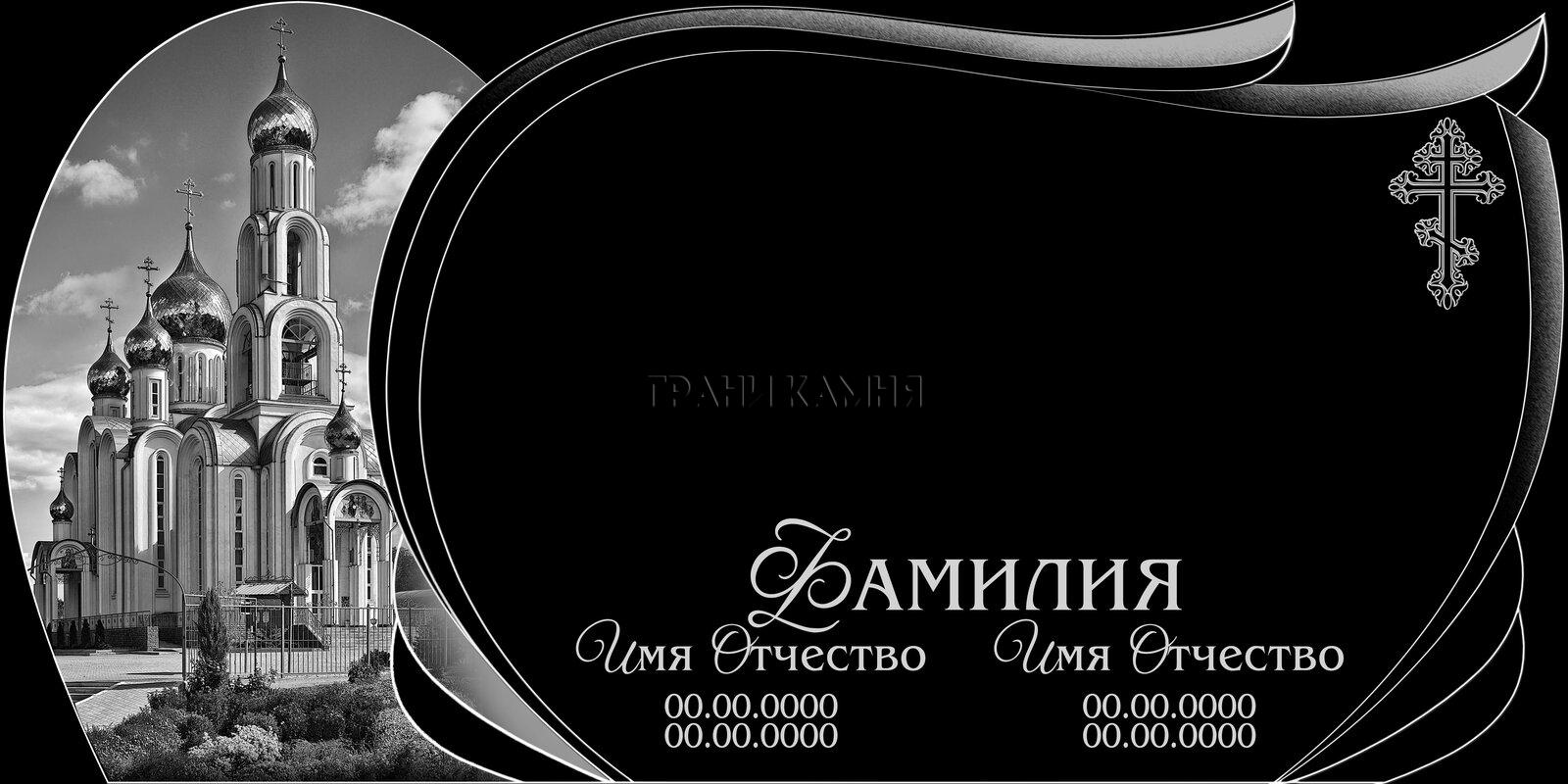 Горизонтальный гранитный памятник с церковью и крестом №83
