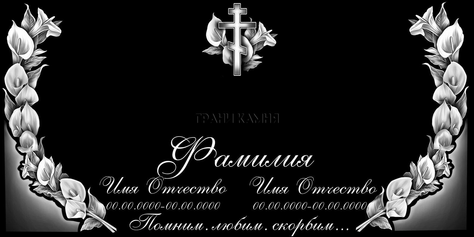 Горизонтальный гранитный семейный памятник с крестом и каллами №2