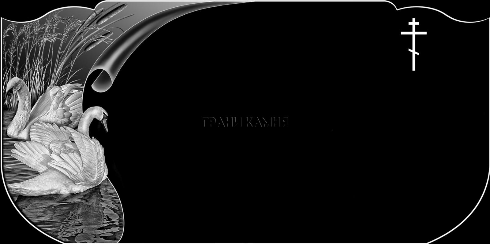 Горизонтальный гранитный семейный памятник с крестом и лебедями №98