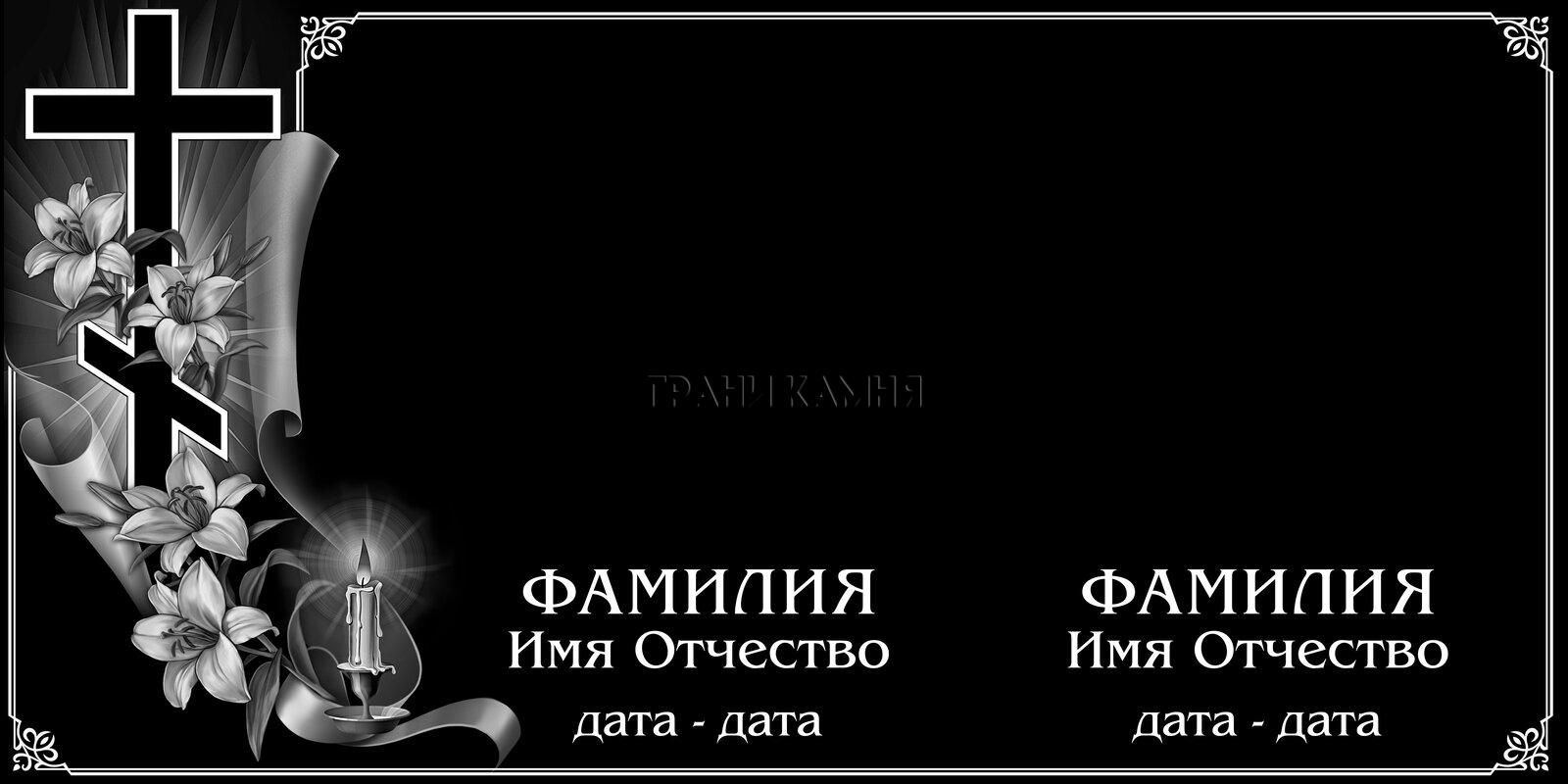 Горизонтальный гранитный памятник на двоих с крестом и лилиями №71