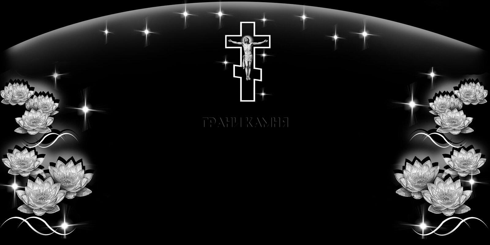 Горизонтальный гранитный памятник на двоих с крестом и лотосом №24