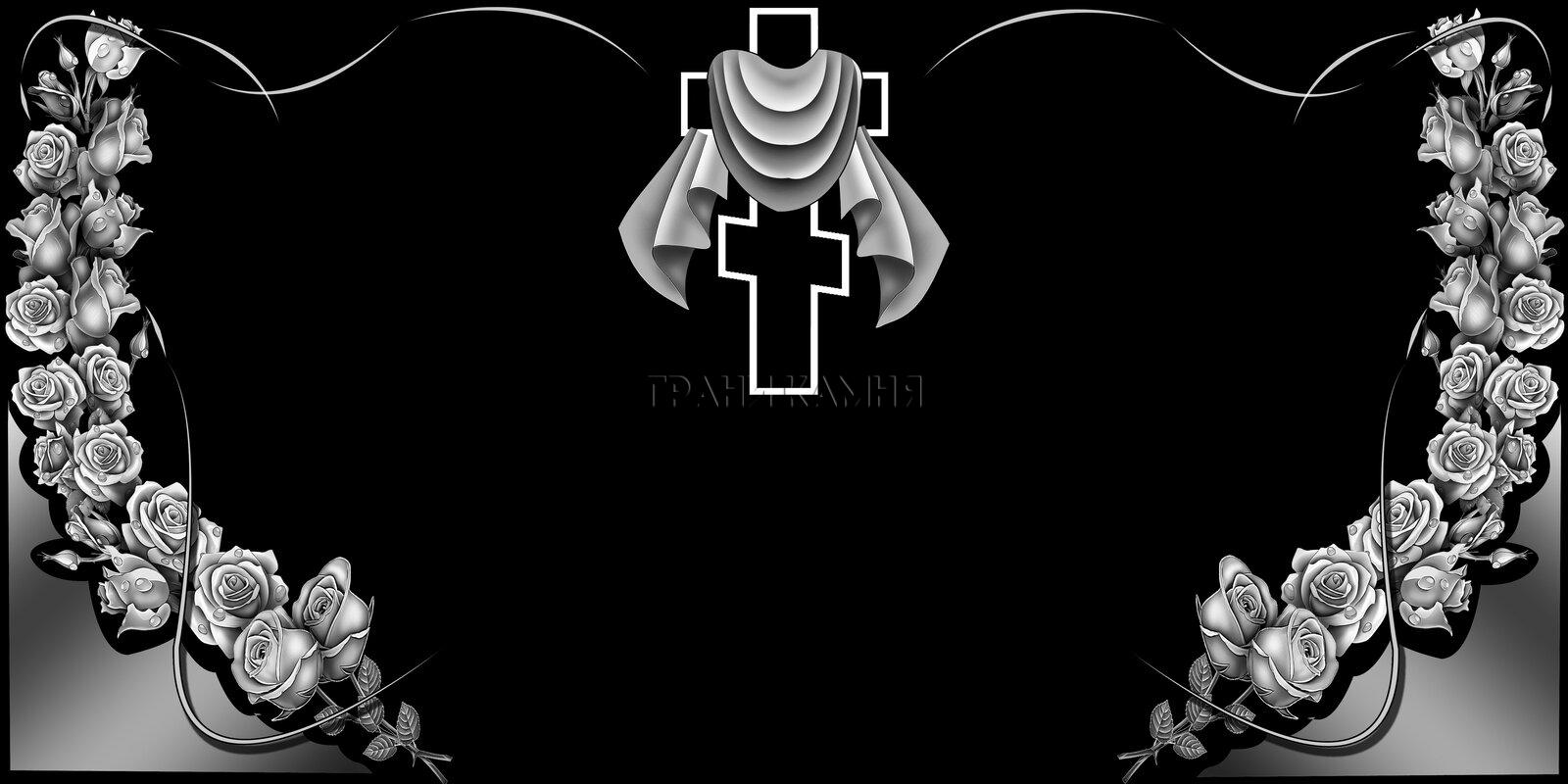 Горизонтальный гранитный памятник на двоих с крестом и розами №38