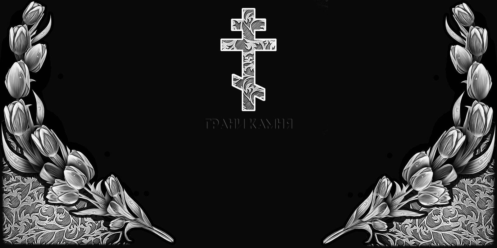 Горизонтальный двойной гранитный памятник с крестом и тюльпанами №14