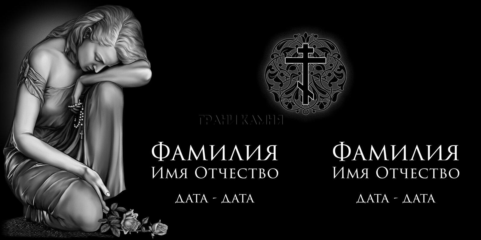 Горизонтальный гранитный памятник на двоих со скорбящей женщиной №69
