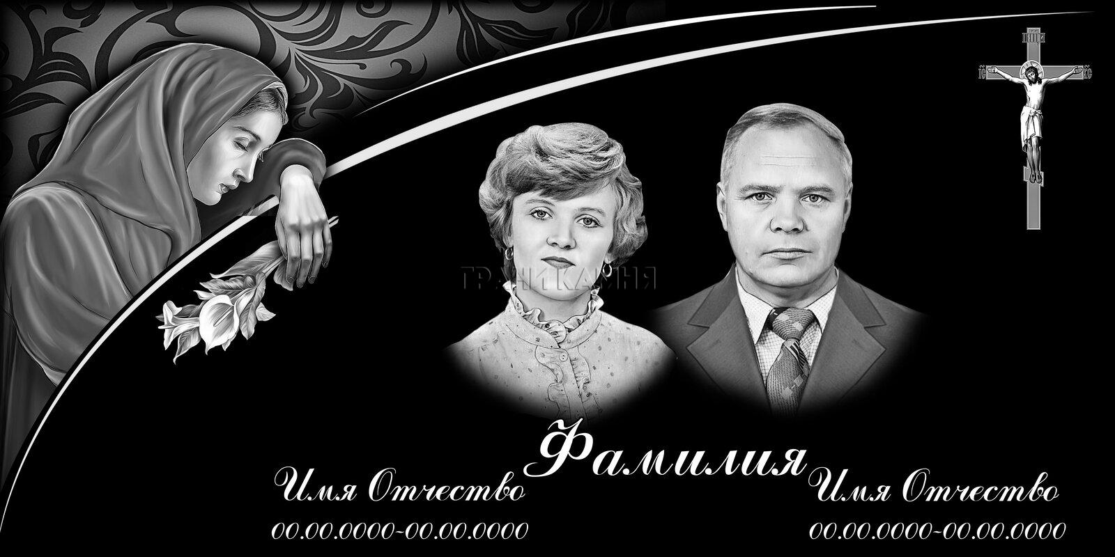 Семейный горизонтальный гранитный памятник со скорбящей женщиной №6