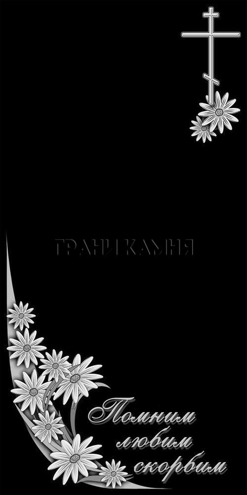 Вертикальный гранитный памятник на могилу с крестом и цветами №241