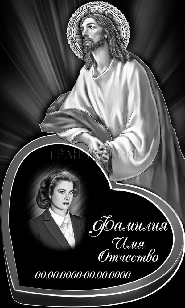 Вертикальный гранитный памятник женщине на могилу с Иисусом №121
