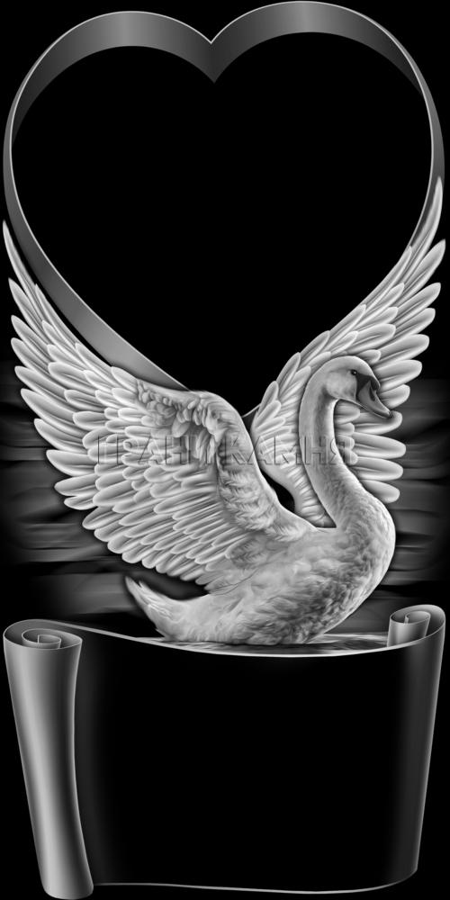 Вертикальный гранитный памятник на могилу с сердцем и лебедем №189