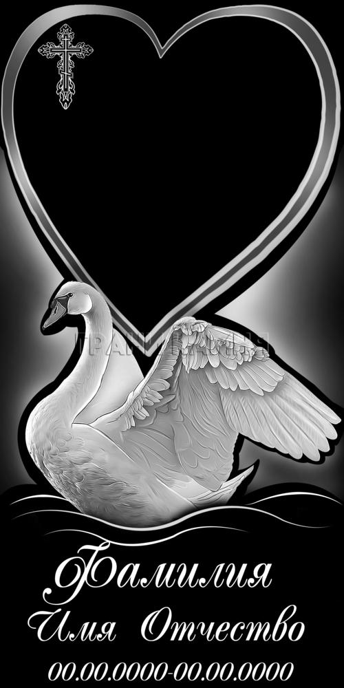 Вертикальный гранитный памятник на могилу с сердцем и лебедем №42