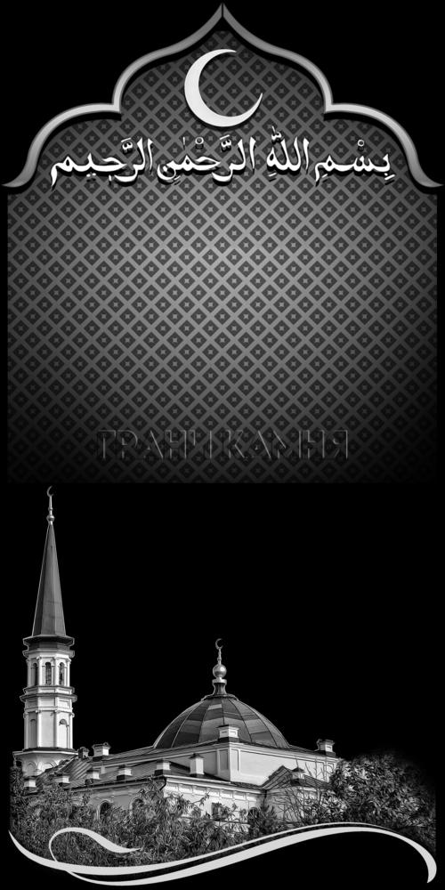 Вертикальный гранитный мусульманский памятник на могилу с мечетью №100