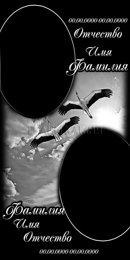 Вертикальный гранитный семейный памятник на могилу с журавлями №150