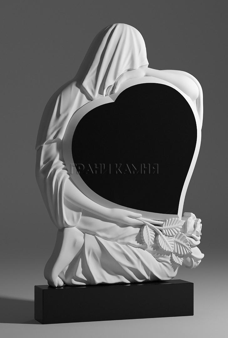 Вертикальный гранитный памятник резной со скорбящей женщиной № 120/10