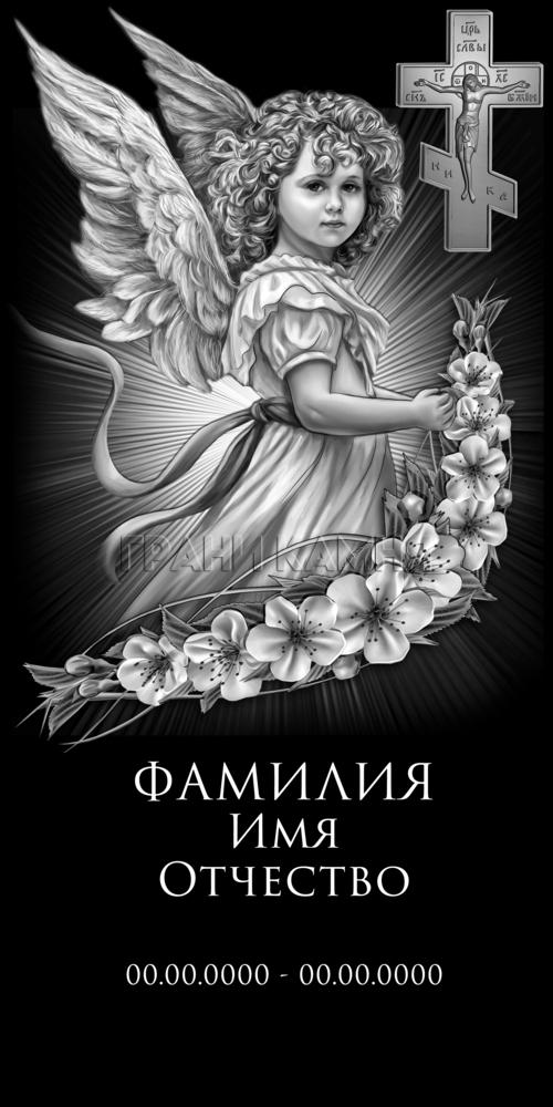 Вертикальный гранитный детский памятник с ангелом и крестом №93