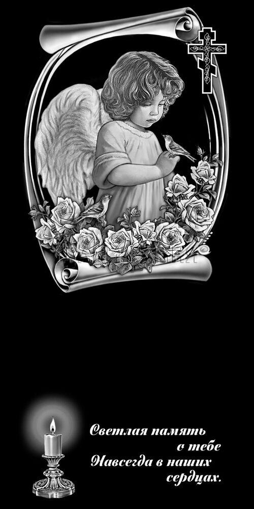 Вертикальный гранитный детский памятник с ангелом и розами №332