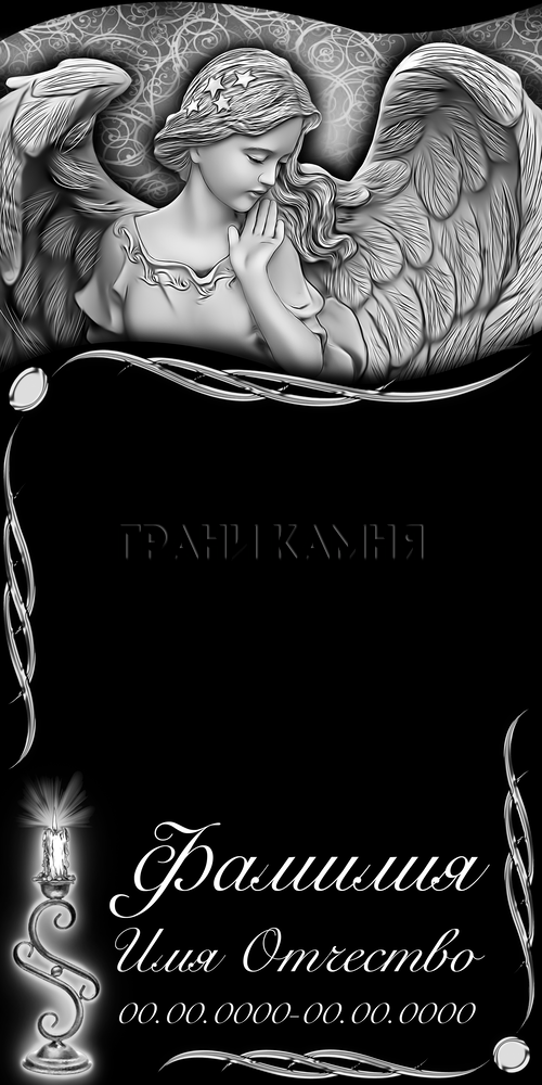 Вертикальный гранитный памятник с ангелом и свечой №347