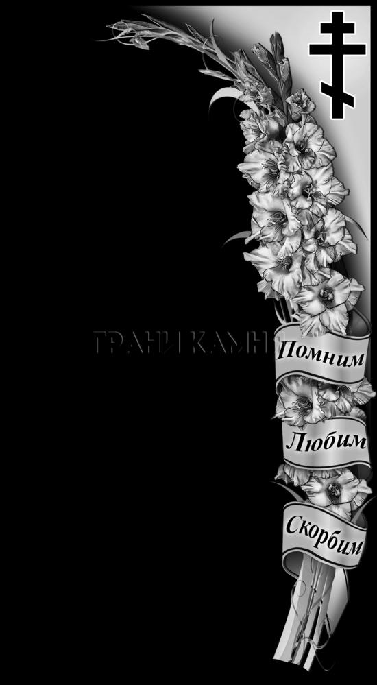 Вертикальный гранитный памятник с гладиолусами и крестом №41