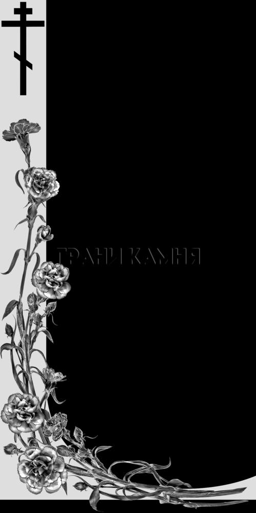 Вертикальный гранитный памятник с гвоздиками и крестом №33