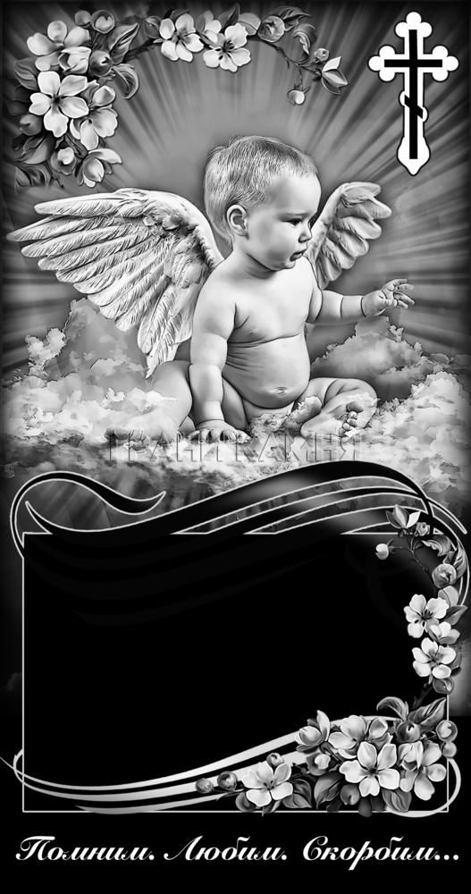 Вертикальный гранитный детский памятник с крестом и ангелом №17