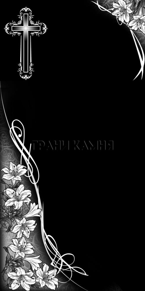 Вертикальный гранитный памятник с крестом и лилиями №117