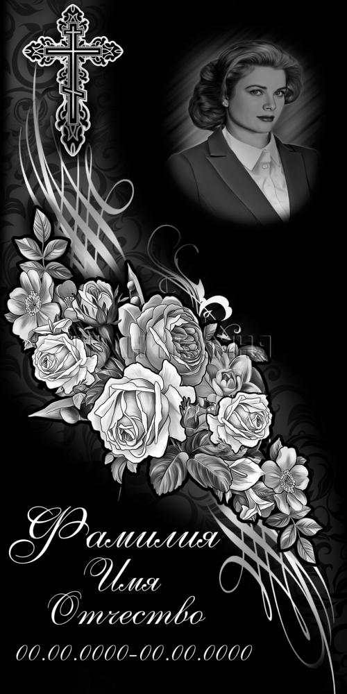 Вертикальный гранитный памятник женщине на могилу с крестом и розами №119