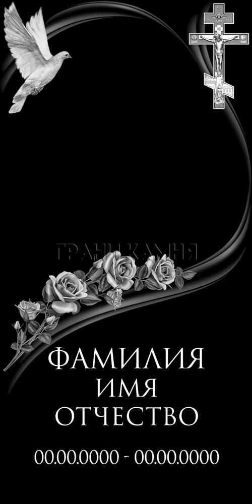 Вертикальный гранитный памятник с крестом и розами №375