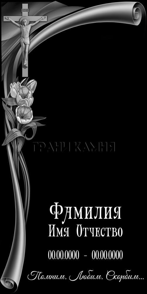 Вертикальный гранитный памятник с крестом и тюльпанами №183