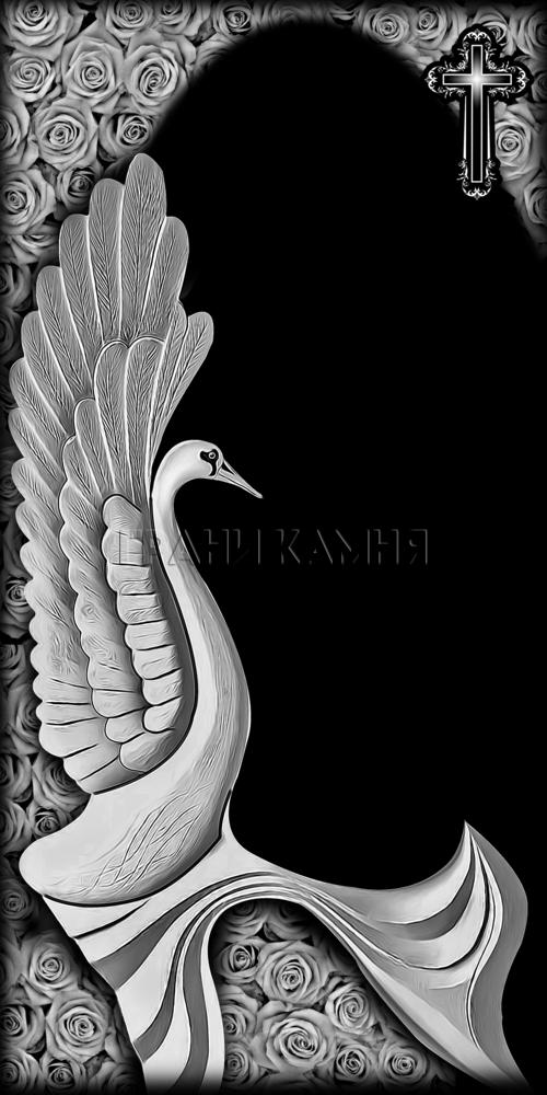 Вертикальный гранитный памятник с лебедем и крестом №178