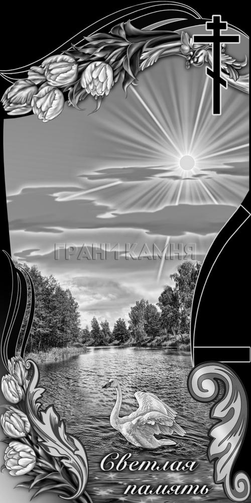 Вертикальный гранитный памятник с лебедем и крестом №77