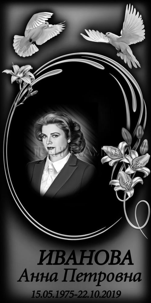 Вертикальный гранитный памятник женщине с лилиями и голубями №191