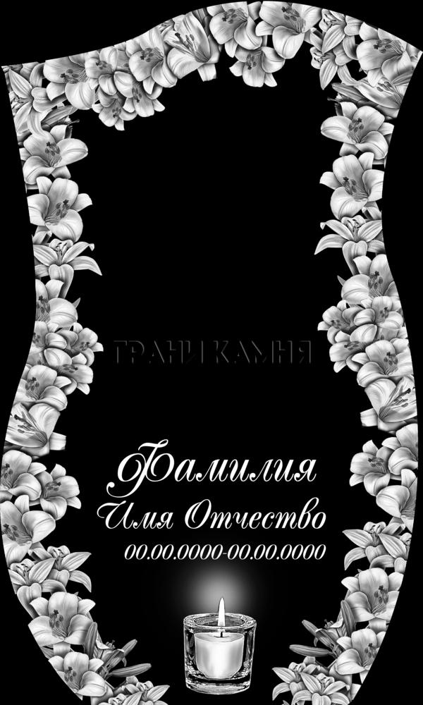 Вертикальный гранитный памятник с лилиями и свечой №26