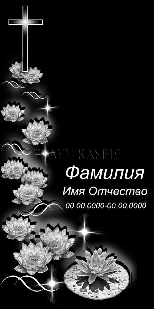 Вертикальный гранитный памятник с лотосами и крестом №2