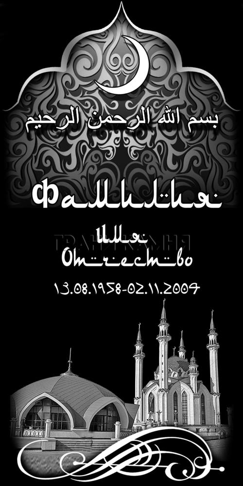 Вертикальный гранитный мусульманский памятник с мечетью и полумесяцем №164