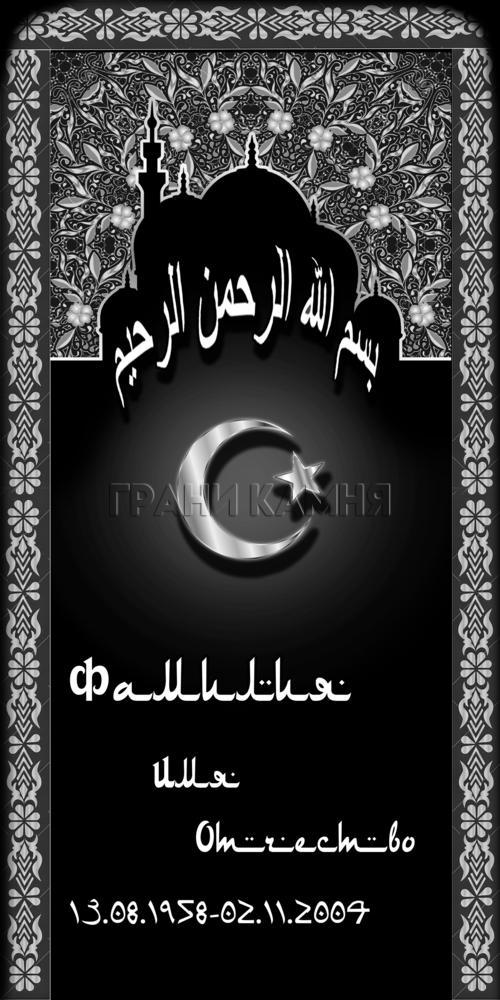 Вертикальный гранитный мусульманский памятник с мечетью и полумесяцем №166