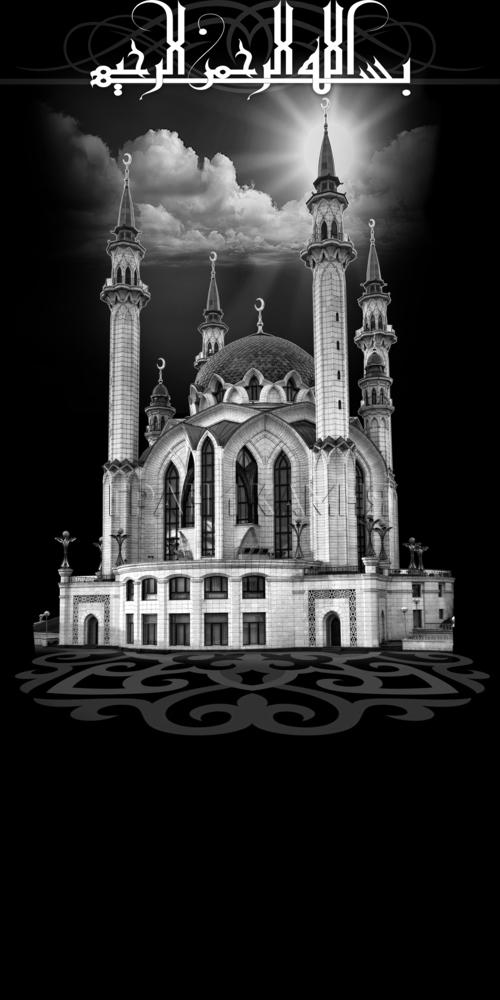 Вертикальный гранитный мусульманский памятник с мечетью №205