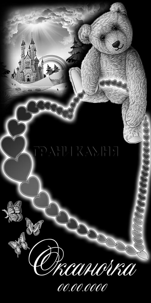 Вертикальный гранитный детский памятник с сердцем и мишкой №184
