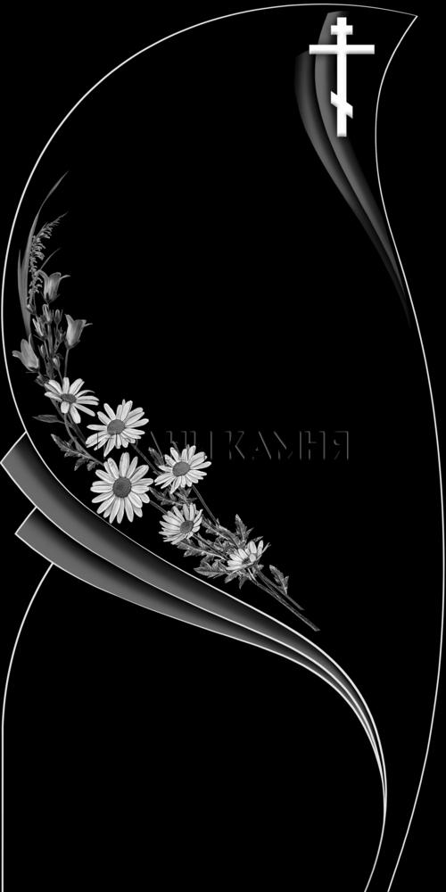 Вертикальный гранитный памятник с крестом и ромашками №213