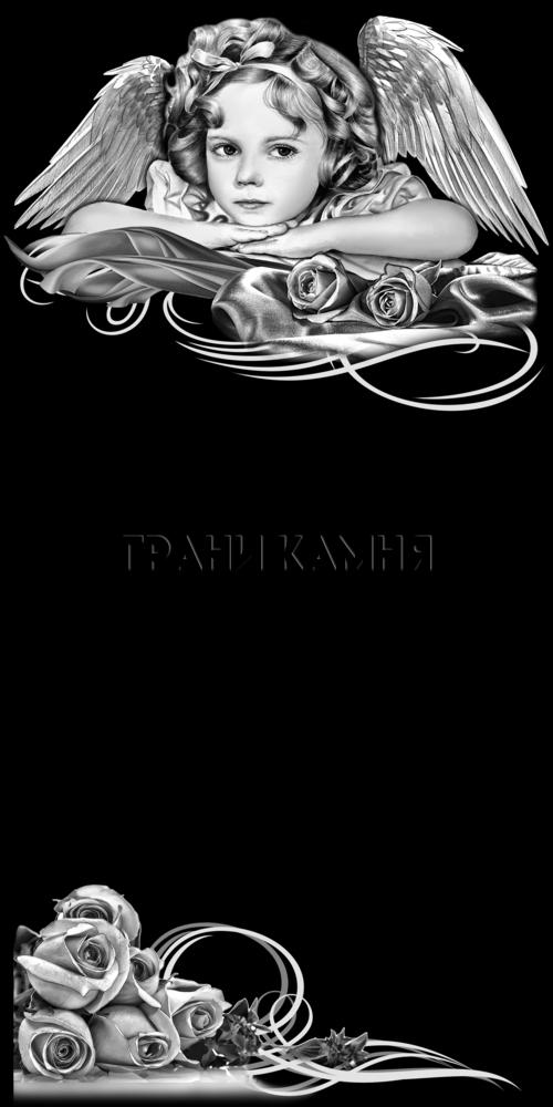 Вертикальный гранитный детский памятник с ангелом и розами №11