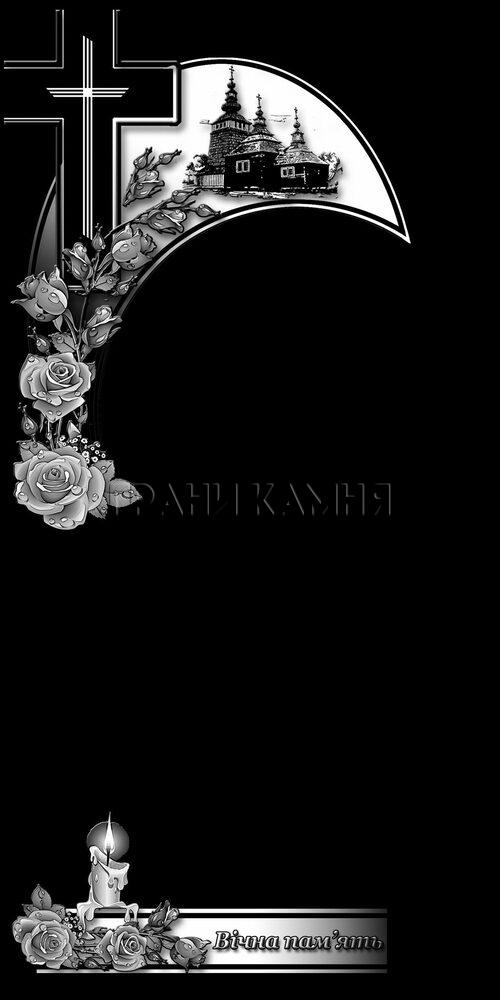 Вертикальный гранитный памятник с розами, крестом и церковью №283