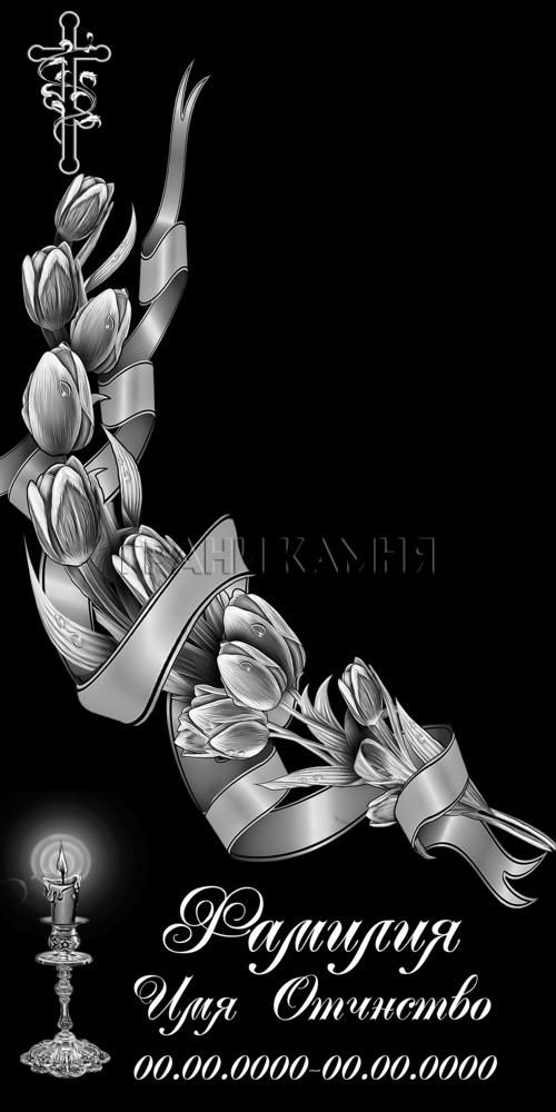 Вертикальный гранитный памятник с тюльпанами и свечой №18