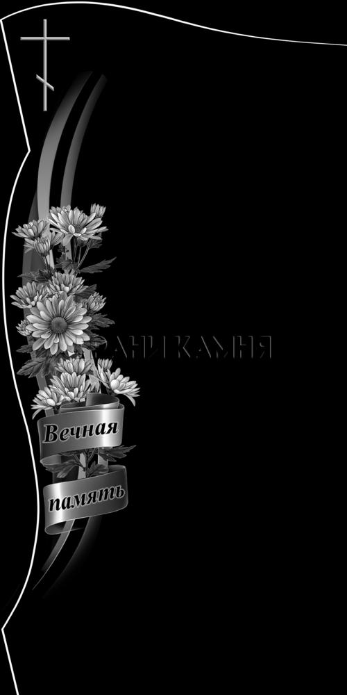 Вертикальный гранитный памятник с хризантемами и крестом №130