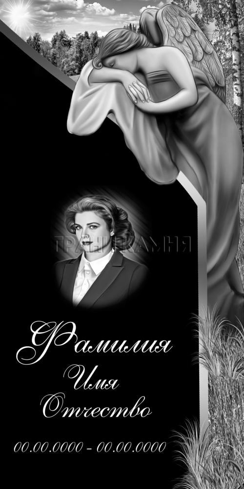 Вертикальный гранитный памятник женщине на могилу с ангелом №192